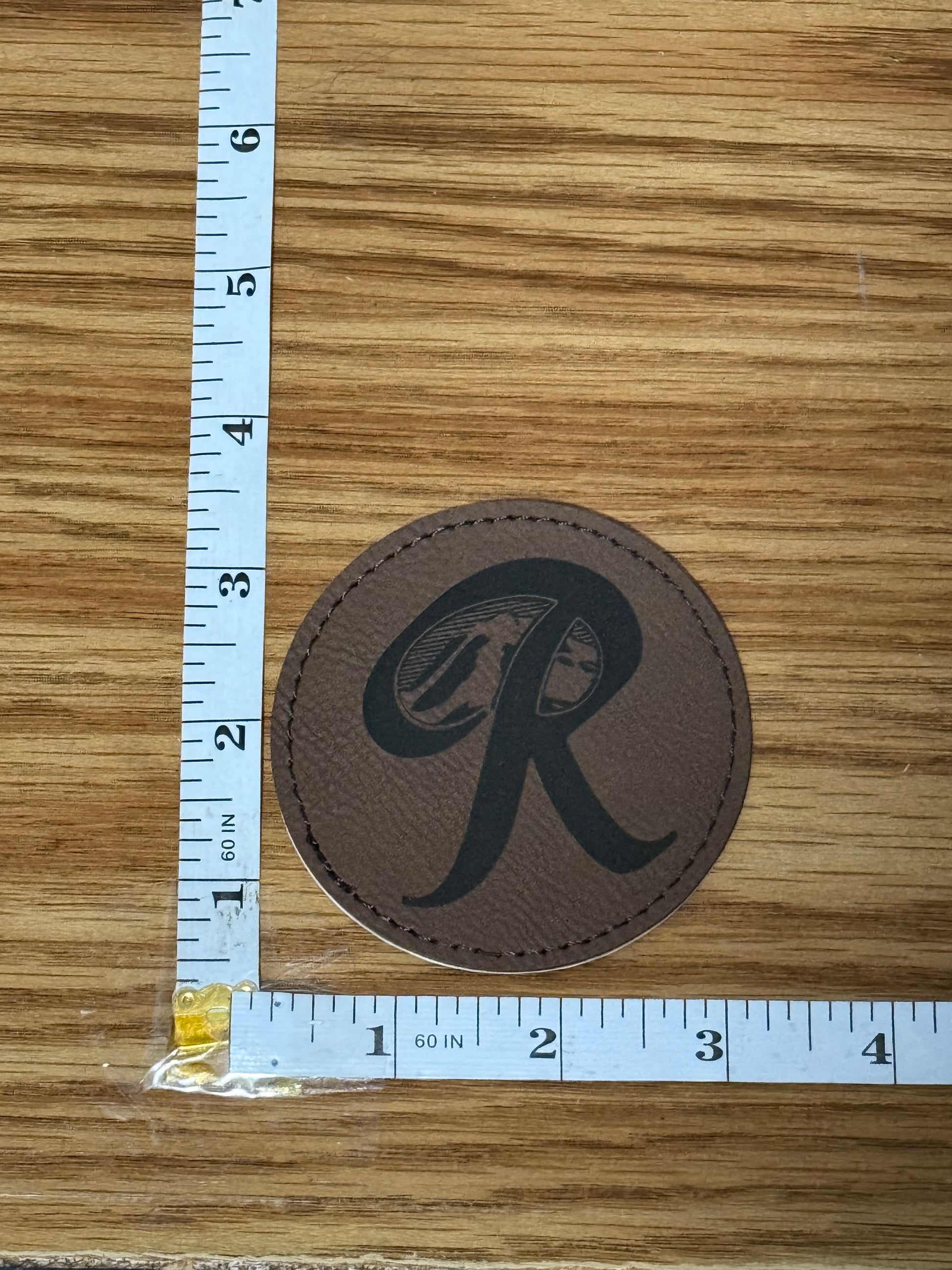 Rainier “R” Faux Leather Patch – Round (Dark Brown)