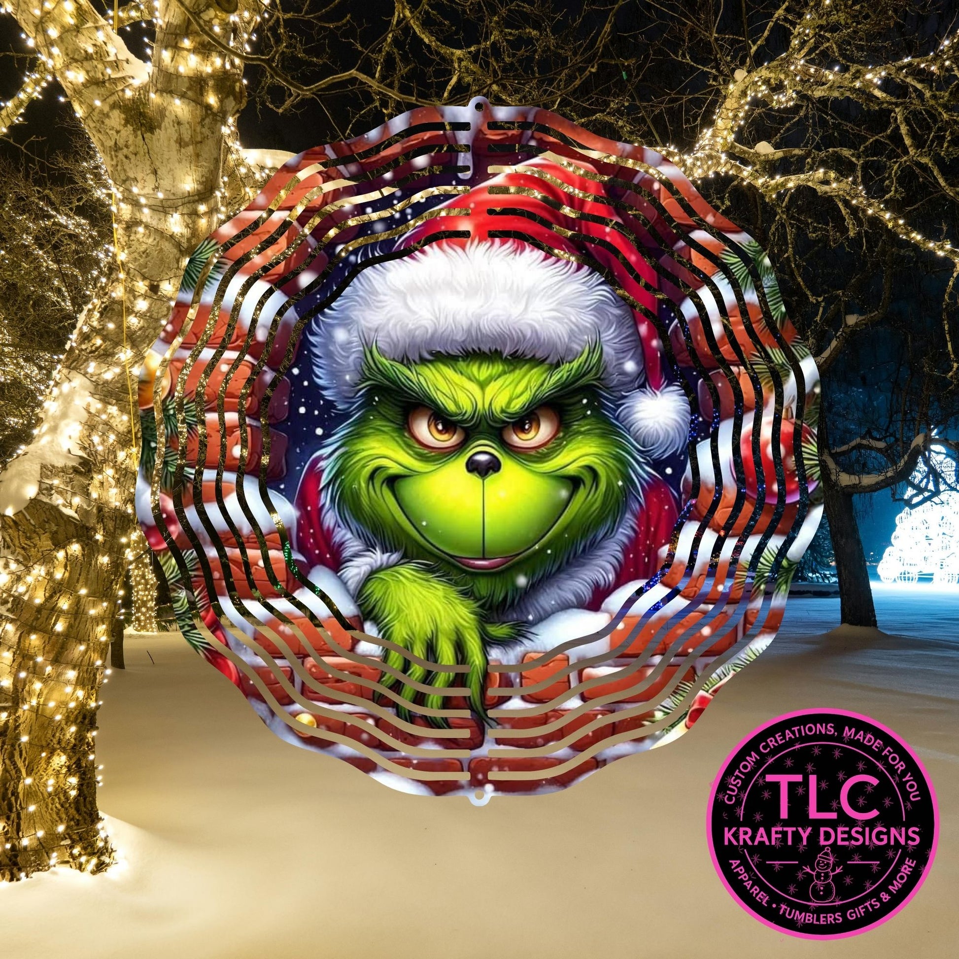 Santa Grinch 10” Wind Spinner – Festive Christmas Sublimated Metal Yard Décor CK