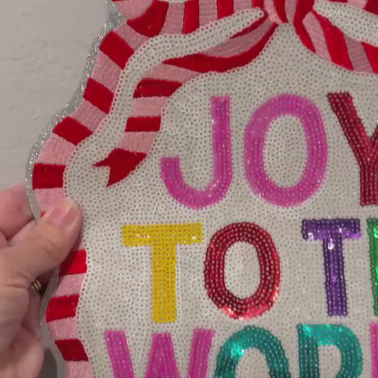 XL Joy to the World Sequin Patch – Festive Holiday Iron-On / Sew-On Applique CK