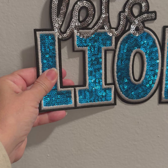 Bring bold game day energy with this Lets Go Lions blue sequin patch!