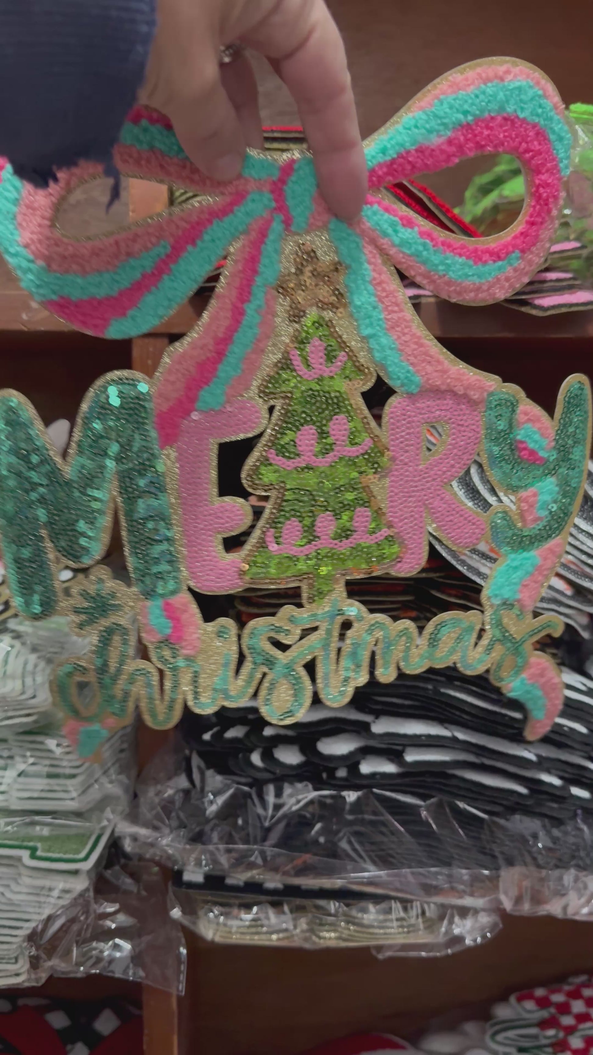 Add sparkle and sweetness to your holiday projects with this XL pastel chenille patch! Featuring the words “Merry Christmas” with a bright sequin Christmas tree and oversized candy-cane style bow, this patch is a fun and festive way to customize your favorite apparel and accessories.