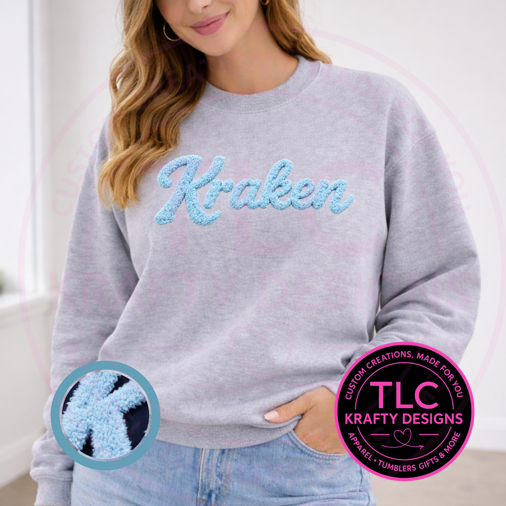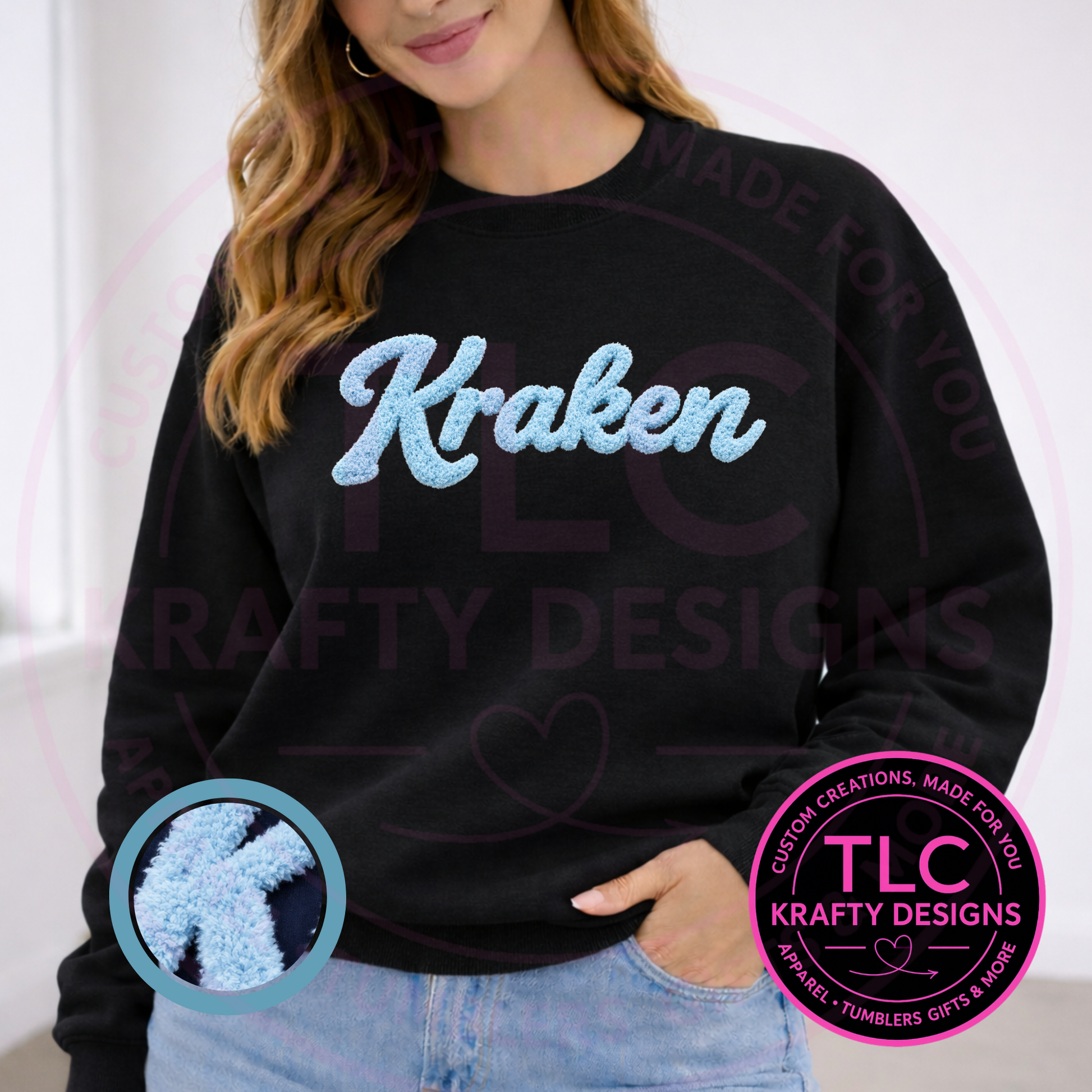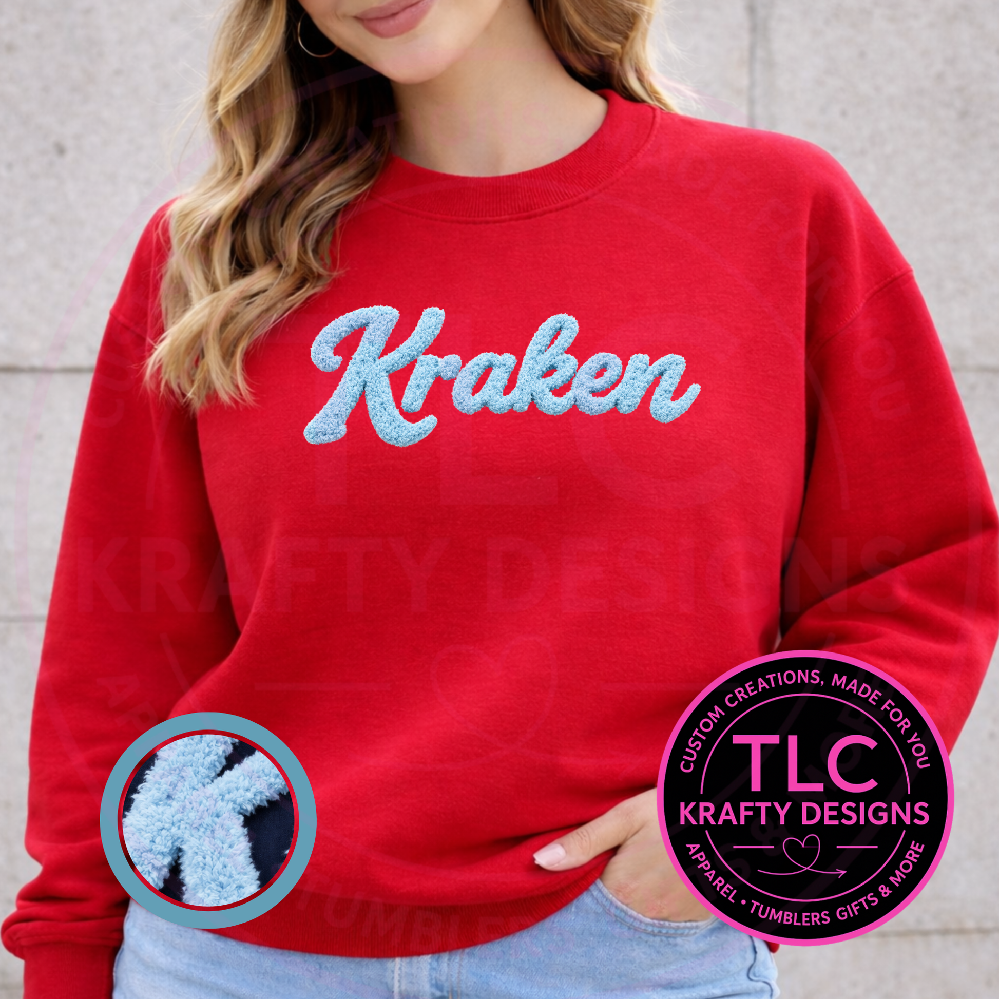 This bold chenille patch features a soft raised script design inspired by Seattle hockey team colors, giving it a sporty yet stylish game day look. Eye‑catching, textured, and full of team spirit, it’s perfect for customizing sweatshirts, jackets, tote bags, and fan gear. A must‑have for hockey fans who want to create their own standout hockey-inspired apparel.