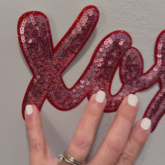 Add sparkle and sweetness to any project with this gorgeous XOXO pink sequin script patch!