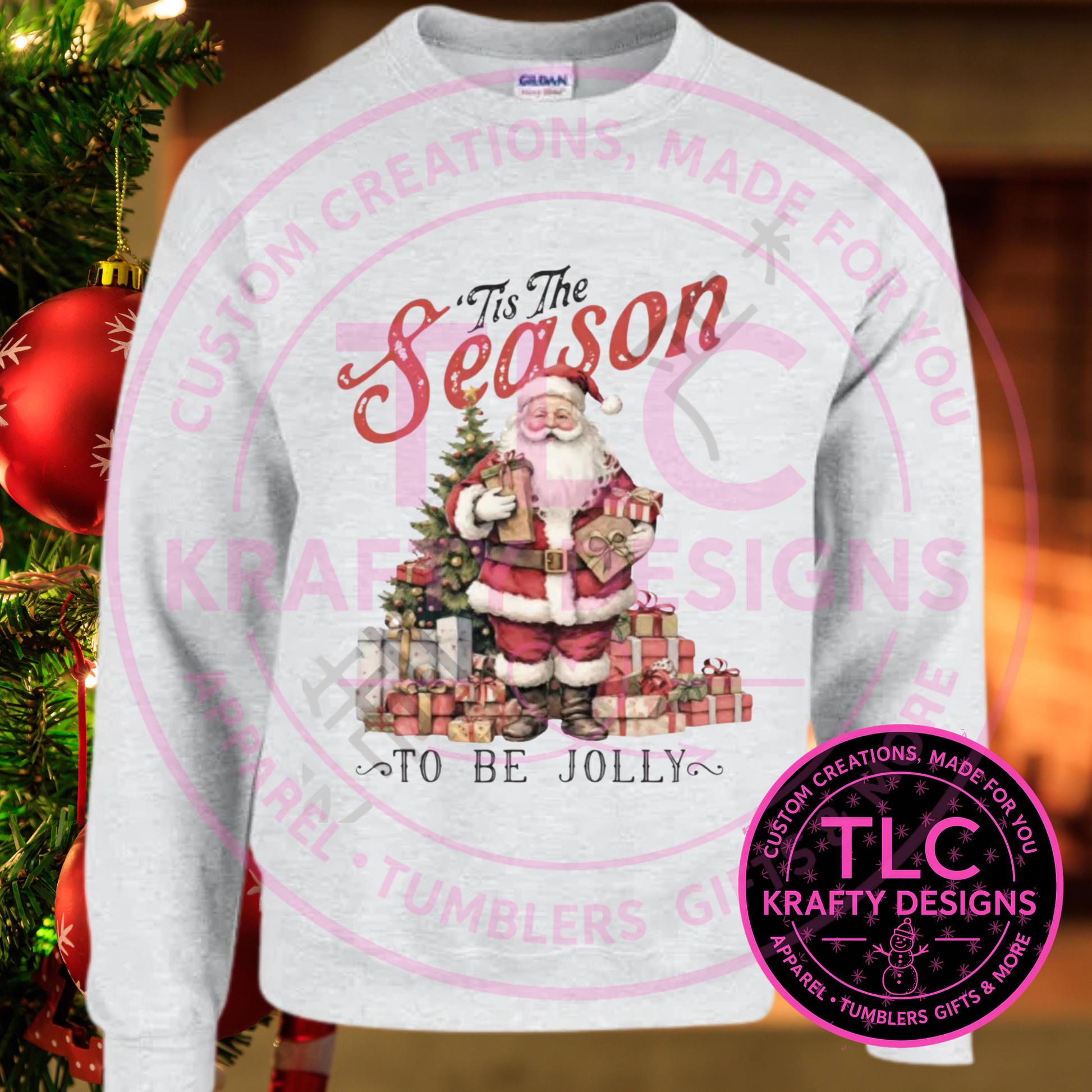 Spread holiday cheer with this whimsical "Tis the Season to be Jolly" Santa sweatshirt! Featuring a cheerful Santa design surrounded by a festive tree and presents, this playful shirt captures the magic of Christmas. Available in both crew neck and hoodie options, it's perfect for holiday parties, family gatherings, or cozy winter days. Comfortable and fun, this sweatshirt lets you celebrate the season with a smile. Whether you're decorating, gift-giving, or just embracing the festive spirit, this jolly design brings instant holiday joy to your wardrobe.